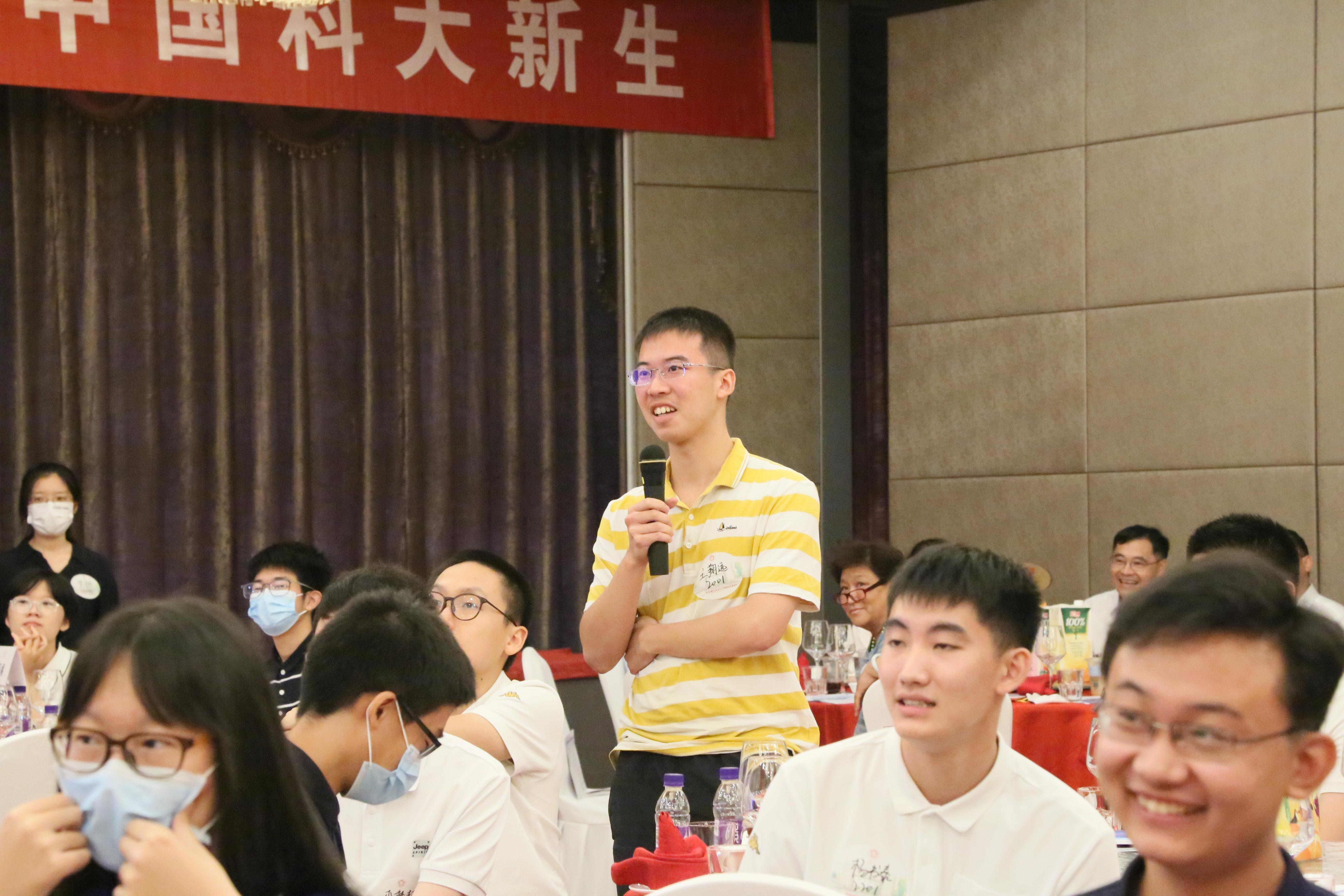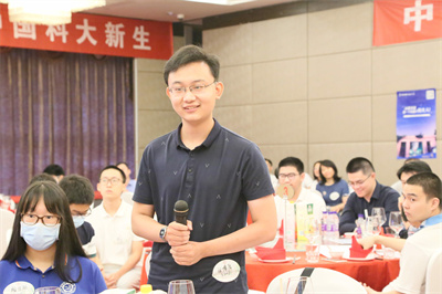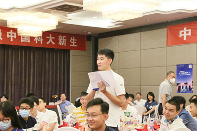 这位小男孩即将到地空学院学习。他被作为志愿者派去迎接李曙光院士(地空学院教授)。好几位新生提问,得到同一桌的赵忠贤与李曙光院士详尽的回答。有一位新生好奇:地球科学研究什么?李曙光院士给了他全景式的解读。