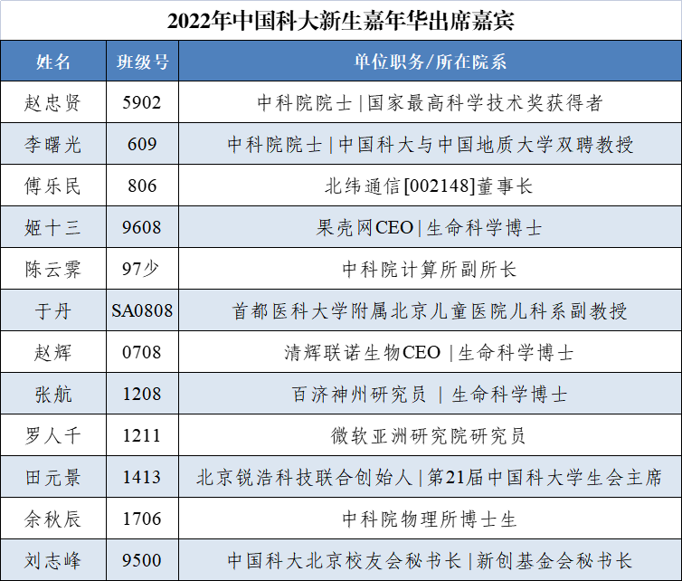 7月30日,2022中国科大新生嘉年华在北京进行。赵忠贤院士(5902,“国家最高科学技术奖”获得者)、李曙光院士(6009)等12位杰出校友与北京、天津、河北、山东的67位同学及家长座谈分享。北京校友会(与新创校友基金会)还在中关村皇冠假日酒店设晚餐招待新生与家长。