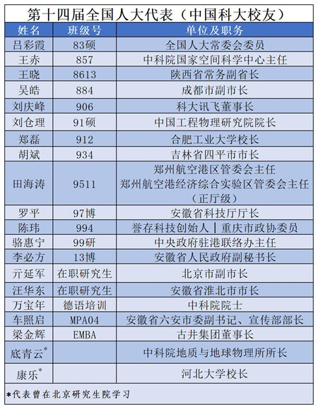 中国科大校友中的人大代表