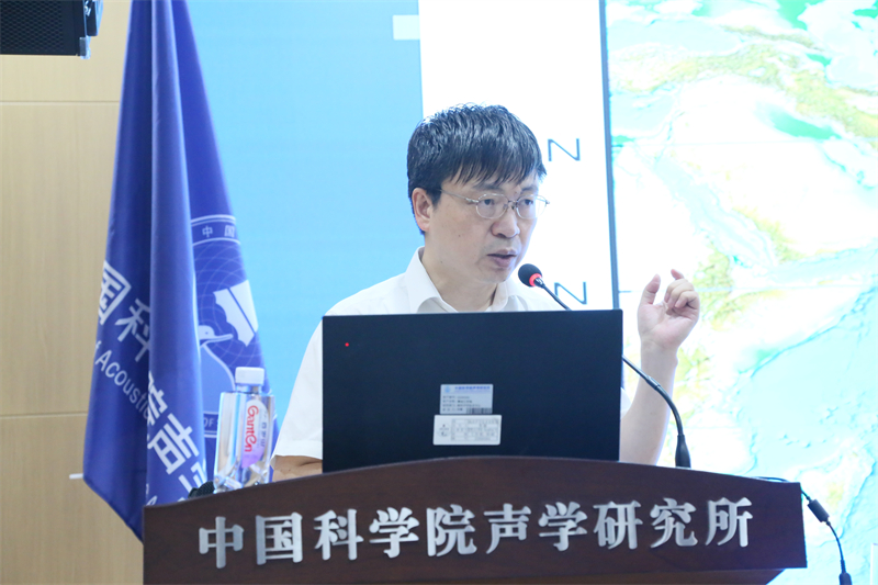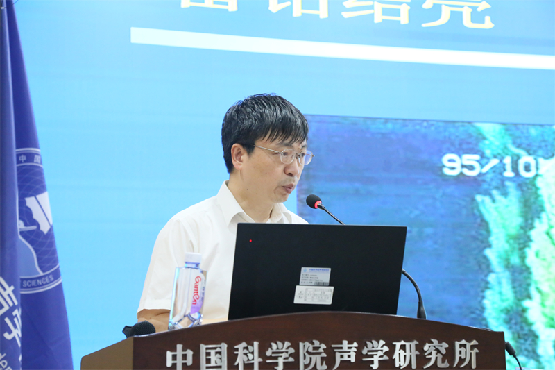 上午10:30,新生与家长一行来到声学所,简短参观展厅之后。国家科技进步一等奖获得者、全国五一劳动奖章获得者朱敏研究员(896)做海洋声呐学的科普报告。