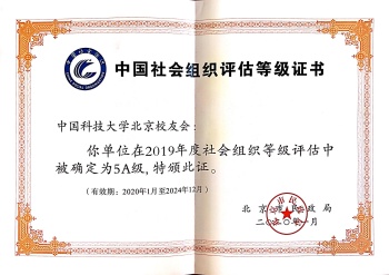 2019年8月28日,北京校友会接受北京市民政局2019市级社会组织评估。2019年12月23日北京市民政局公布2019市级社会组织评估结果(京民社发〔2019〕193号),中国科技大学北京校友会获评5A级社会组织资质。