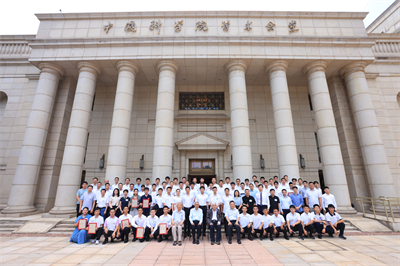2023年新生嘉年华“走进中科院”合影(国家自然科学奖二等奖第一完成人、中科院计算所副所长、97少陈云霁博士与新生合影)。
