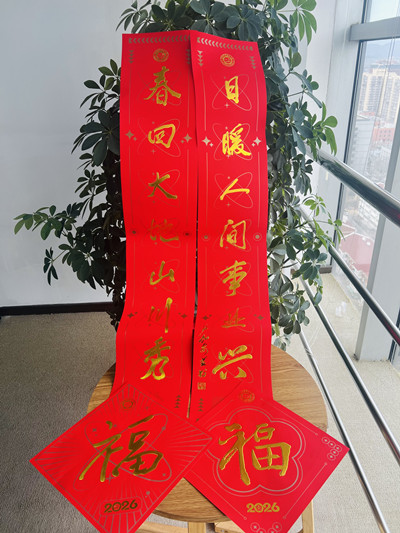今年,中国科大校领导与教授有4位院士题写福字:党委书记舒歌群院士、校长常进院士(844)、常务副校长潘建伟院士(874)和化学学院教授徐铜文院士;常进还手写贺卡祝词;3位院士校友书写春联、福字和窗花:严加安(5911,中科院数学与系统科学研究院研究员)、饶子和(732,南开大学原校长)和崔屹院士 (9312,斯坦福大学教授)。