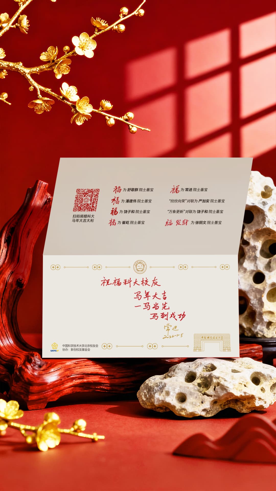 北京校友会连续第五年推出中国科学技术大学院士春联礼盒,现发布七位中国科学院院士挥毫的2026春联设计稿,欢迎登记领取!此为校友登记通道,科大在读生登记院士墨宝春联