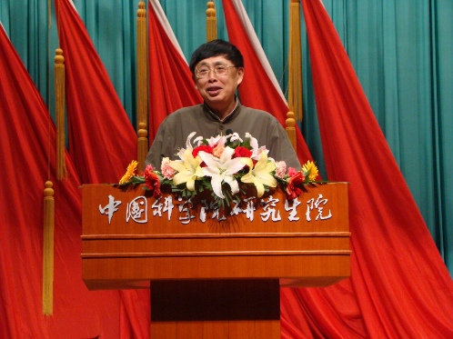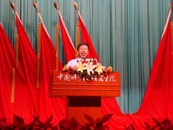 饶子和“那好,我代表南开大学校友总会祝贺北京校友会庆祝中国科大创办50周年大会召开!”,饶子和致辞后高呼“中科大,永远强盛!”(摄影:冯侦探)