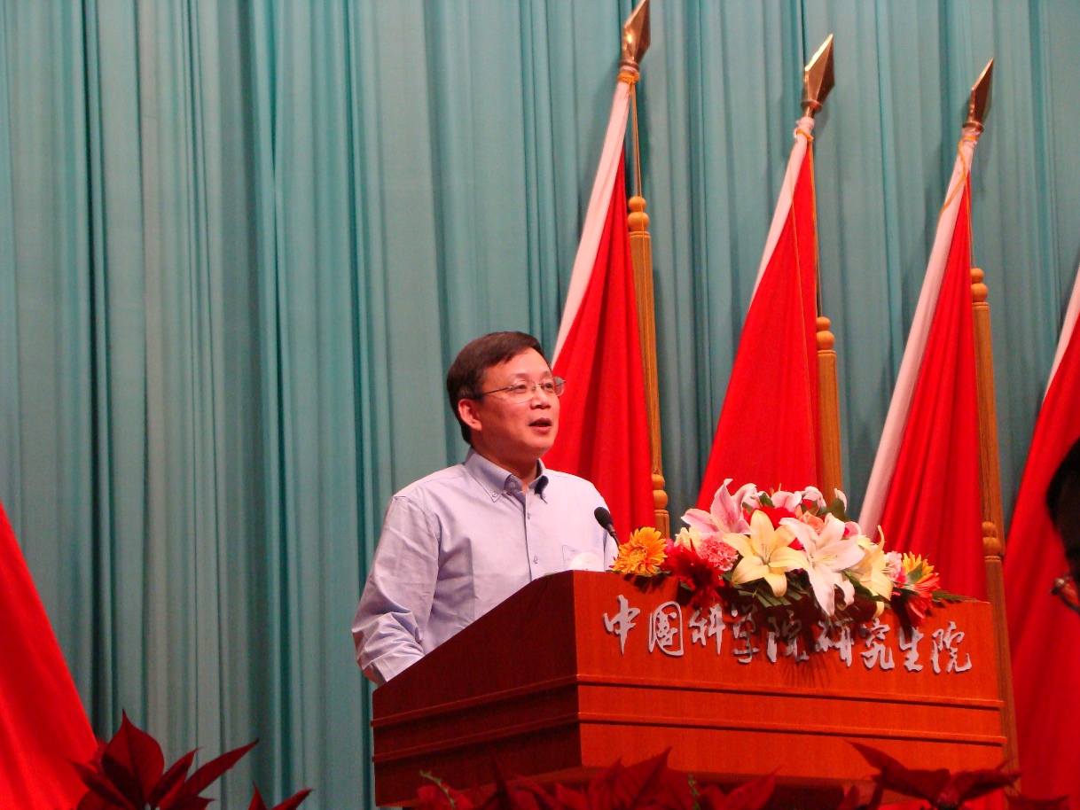 郭传杰书记致辞,称中国科大盛产世界最好的校友。郭传杰对科大校友对母校的深情多有赞誉。他特别介绍新创基金会帮助母校的努力。(摄影:冯侦探)