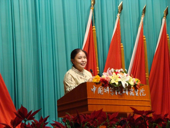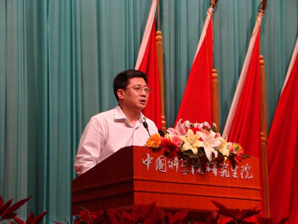 侯建国副校长通报学校建设成就,避谈邮票秘笈——中国邮政总局即将为中国科大发行创办50周年纪念邮票,中国科大开创为大学50周年发行邮票的先例。(摄影:冯侦探)