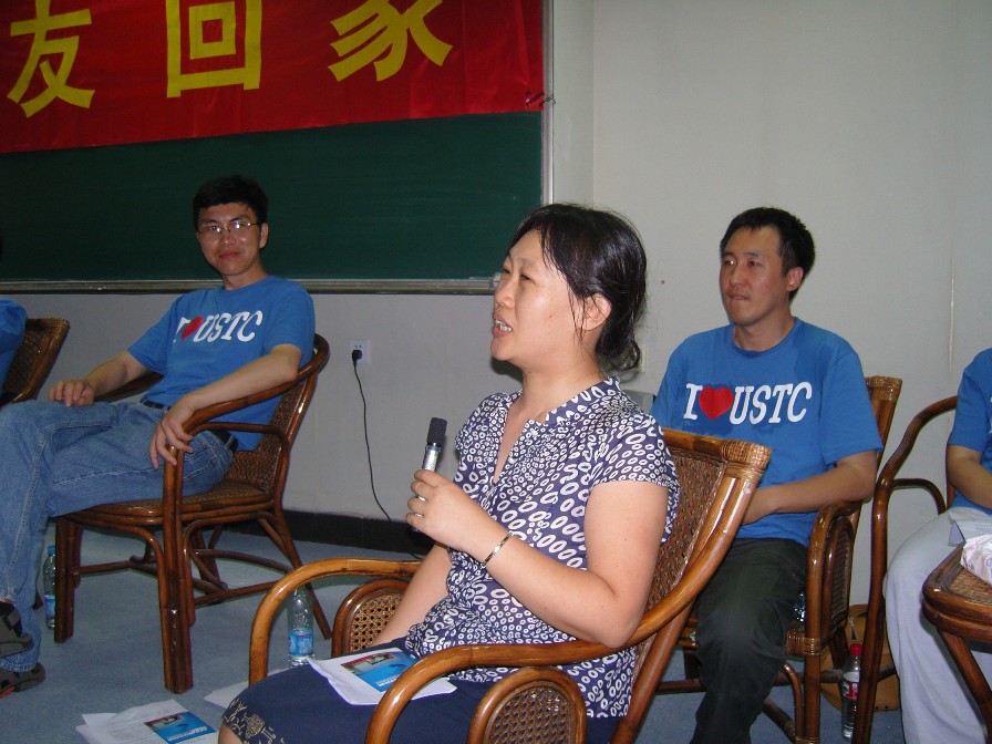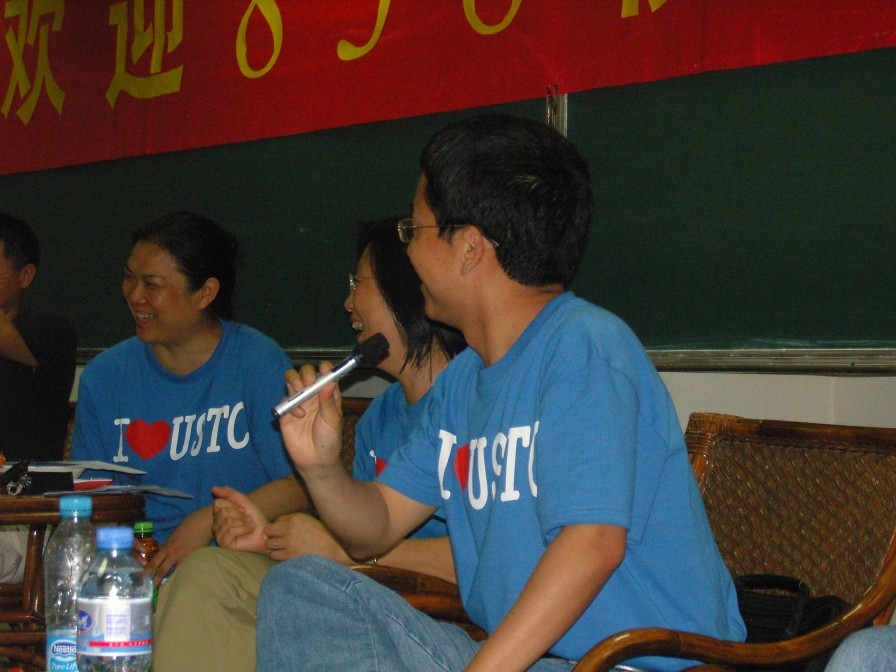 座谈尾声时,有同学提出一个貌似老套的问题,询问校友在科大最大的收获、对同学的忠告。校友的回答是“说个庸俗的:我在科大最大的收获就是找到了现在的丈夫。”有人回答“只有在科大,不及格的阴影一直笼罩着我们。出国了我们才知道,原来在长青藤学校我也可以拿第一的。” “科大给我的最大的好处就是可以目空一切。” 而校友给同学留下的最真诚的忠告就是“不要把我们当成例子或者偶像。你们会更精彩”。