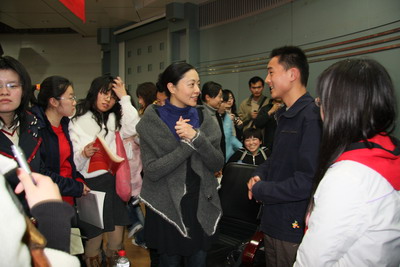 座谈会后吴雪筠与同学们交流。