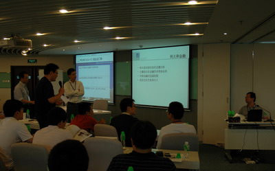 会场一角:何宜杰(9316硕士,距镜头最近,穿白衣者)与夫人在聆听演讲。镜头远处托腮女生为海归仅仅数月的中国银监会黄直(95少,哥伦比亚大学博士)。镜头远处引颈绿色体恤男生为三星研究院吴起博士(95少)。