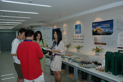 活动开始前,帅琪(9514)与张树新交谈。帅琪在芝加哥大学商学院获得MBA学位,现供职于香港汇丰银行。专程从香港赶来的帅琪龙门阵结束后即从首都机场返回香港。——每次校友龙门阵,均有数位校友专程中境外飞来。勿庸置疑,校友龙门阵已成为最国际化的中国科大校友活动品牌。