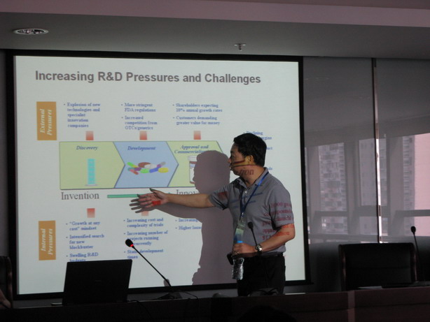 8月29日,校友龙门阵首次在上海进行,图为王立群博士展示创新药物研发的压力与挑战。当晚活动结束后,新创基金会立即转赴苏州拜会校友。