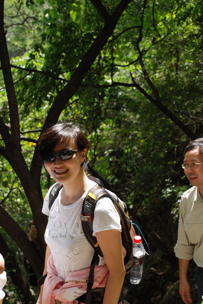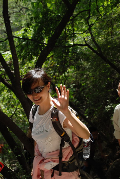 李骁军登绝壁甜蜜小憩中。李骁军警告”你们会骂名千古!谁说香八拉是残奥会项目的说?“ 出发前为校友打气,组织者忽悠校友”专业人士20分钟能上去!" 半程过后,众人骂声四起,皆乎上当。