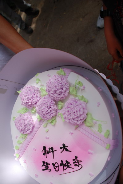劳苦功高的05级蛋糕敢死队员们正在分发蛋糕。王以韶(图中镜头近处,玉臀高耸者)立即将脑袋伸到蛋糕边,边挖边吃。