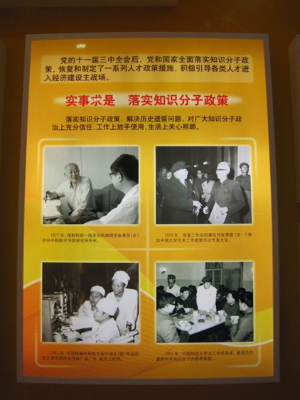 展示中国信息技术成果芯片制造技术突破的版块。图中为神州龙芯、星光中国芯并肩而立。巧合的是两种芯片首席科学家或总裁均为中国科大校友。星光中国芯负责人为中星微总裁邓中瀚(877)。