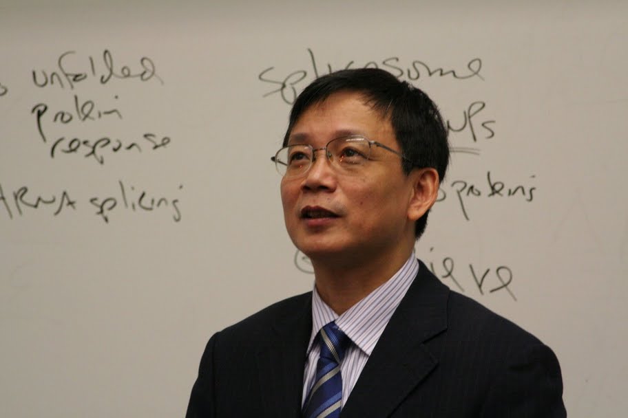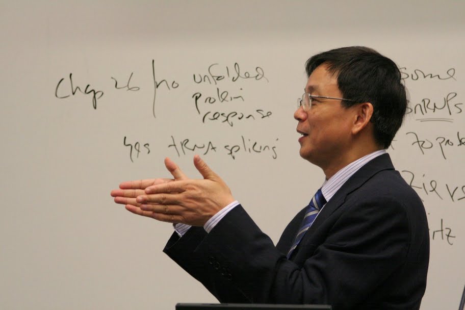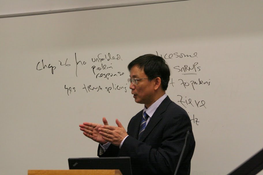 侯建国在Temple大学化学系做学术报告中。
