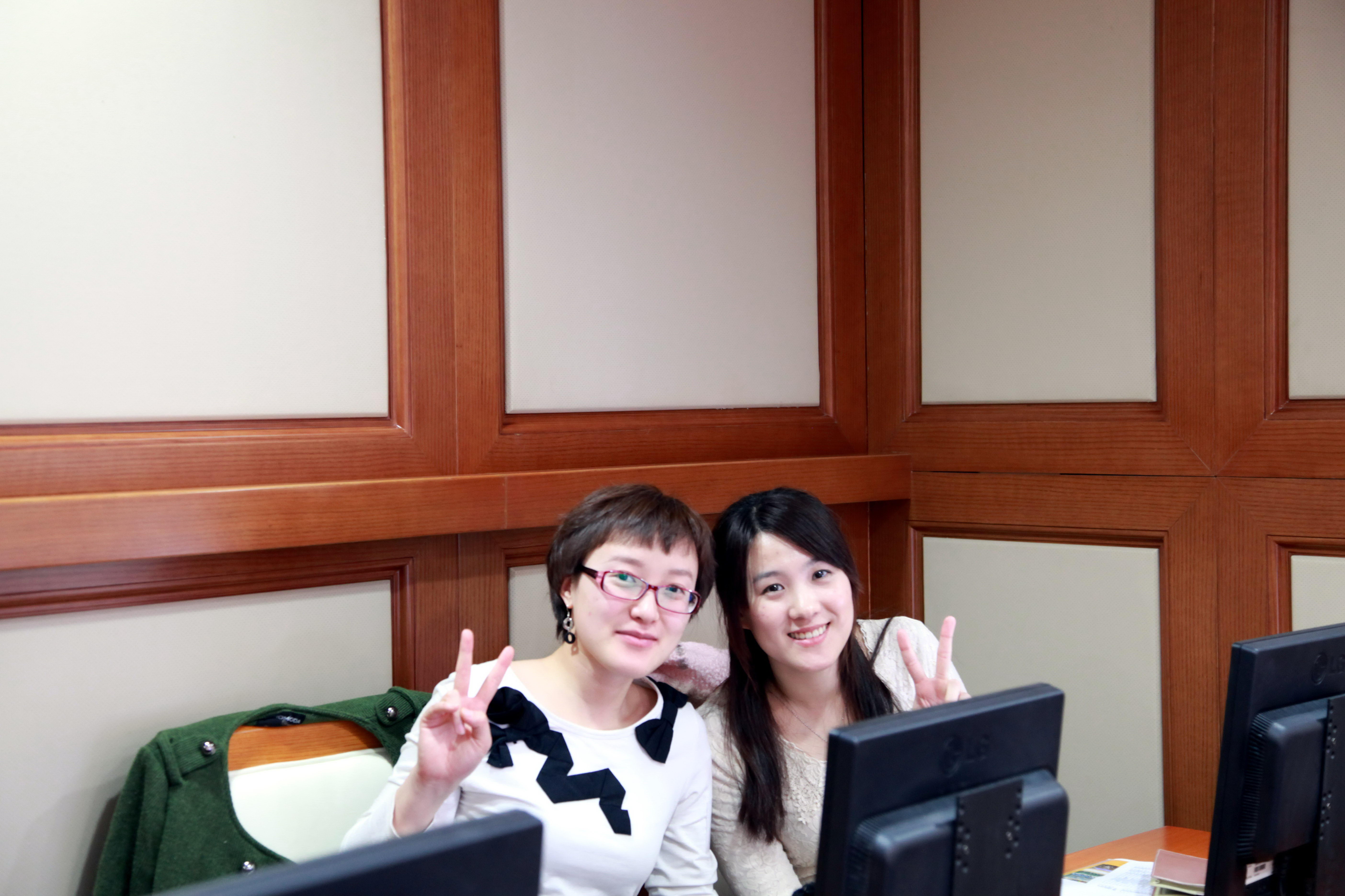 陈佳与魏丽萍交谈。