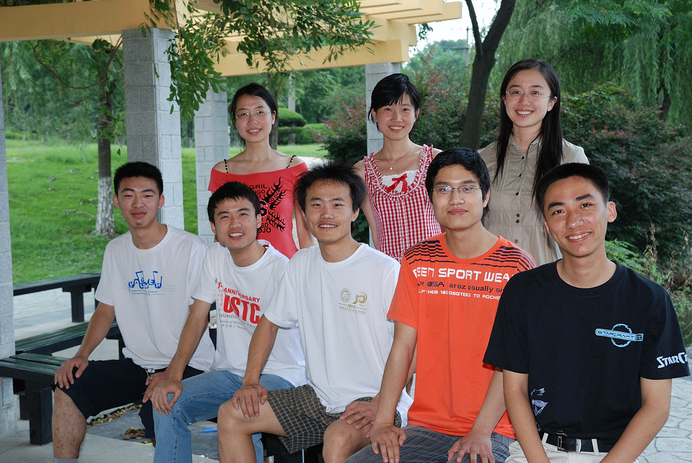 2008iGEM代表队队员摄于中国科大西区,该合影曾作为中国科大校友简报国庆特刊候选封面——因为队员身后大树象征着生机与希望。图中右三为沈贺。