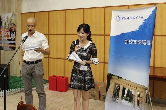 烧尾宴女主持最终花落合肥赛区——中国科大生命学院在读研究生赵琳(0608,0908硕)脱颖而出,她被紧急从合肥空运进京。9月22日18:20,男主持宣布“全场安静,奏乐”后,数百位校友以筷子敲击玻璃杯,此时《非诚勿扰》音乐大作,赵琳从北语会议中心二楼婷婷袅袅,轻移莲步至舞台,让这场烧尾宴开场伊始即充满欢乐的山寨气氛。