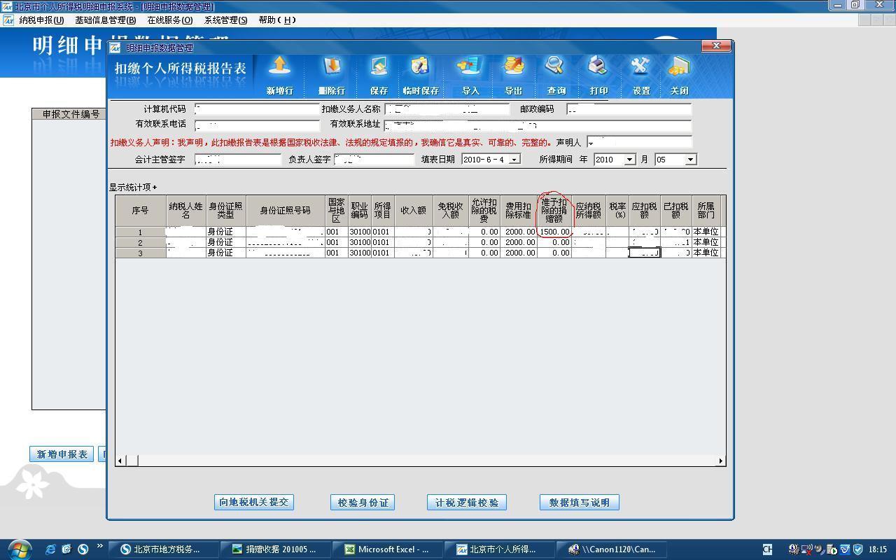 图1. 捐赠个人申请税前扣除时填报 “扣缴个人所得税报告表”的操作截图