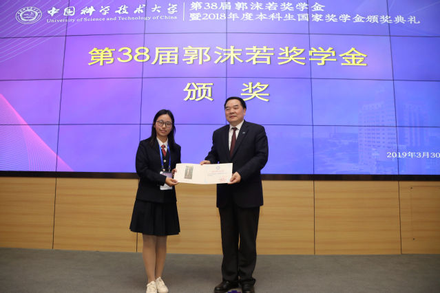2019年3月30日下午,第38届郭沫若奖学金暨2018年度国家奖学金颁奖典礼在东校区理化大楼西三报告厅举行。33名同学获得第38届郭沫若奖学金,101名本科生获得2018年度国家奖学金。