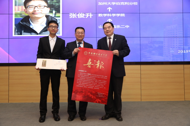 包信和校长首先对获奖同学表示热烈祝贺,并对远道而来的各位家长和老师表示欢迎和感谢。他说,今年是新中国成立70周年,也是五四运动100周年。100年前,一批有知识、有觉悟的中国青年怀揣救亡图存、振兴中华的梦想,在半殖民地半封建的中国发起了振聋发聩的五四运动,拉开了中国新民主主义革命的序幕。70年前,无数仁人志士为了争取民族独立解放和人民自由幸福,抛头颅、洒热血,缔造了新中国。40多年前,改革开放的春雷响彻神州大地,国家恢复高考,一大批知识青年经过上山下乡的磨砺,在实干中找到人生的目标和方向,在追梦中改变了自己的命运,也改变了国家的面貌。百年来,一代代青年人为民族复兴的梦想接续奋斗,中华民族才从站起来走向富起来,从富起来走向强起来。如今,时代已经搭建好人生舞台,希望大家传承“红专并进、理实交融”的校训,弘扬“科教报国、追求卓越”的精神,在激扬青春、追逐梦想、奉献社会的进程中,书写无愧于时代的壮丽篇章,在实现中国梦的伟大实践中,创造自己的精彩人生。