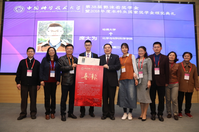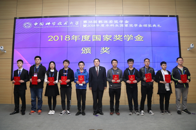 郭沫若奖学金是中国科学技术大学本科生的最高荣誉奖学金。1980年2月,经国务院批准,我校首任校长郭沫若生前交托中国科学院党组的稿费被用于设立“郭沫若奖学金”,用以激励莘莘学子努力攀登科学技术高峰。郭沫若奖学金是新中国第一个以个人命名的奖学金,在国内外享有崇高的声誉,是每一位科大学子梦寐以求的最高荣誉。38年来,共有850名本科生和95名研究生获此殊荣。本年度获得郭沫若奖学金的33名本科生将全部到国内外一流高校或研究机构深造。国家奖学金是2002年设立的级别最高的奖学金,奖励德智体美劳全面发展的优秀学生。我校两个奖项的历届获奖者在科研、教育、金融、IT等领域累出成就,群星璀璨,赢得了社会广泛的赞誉和认可。