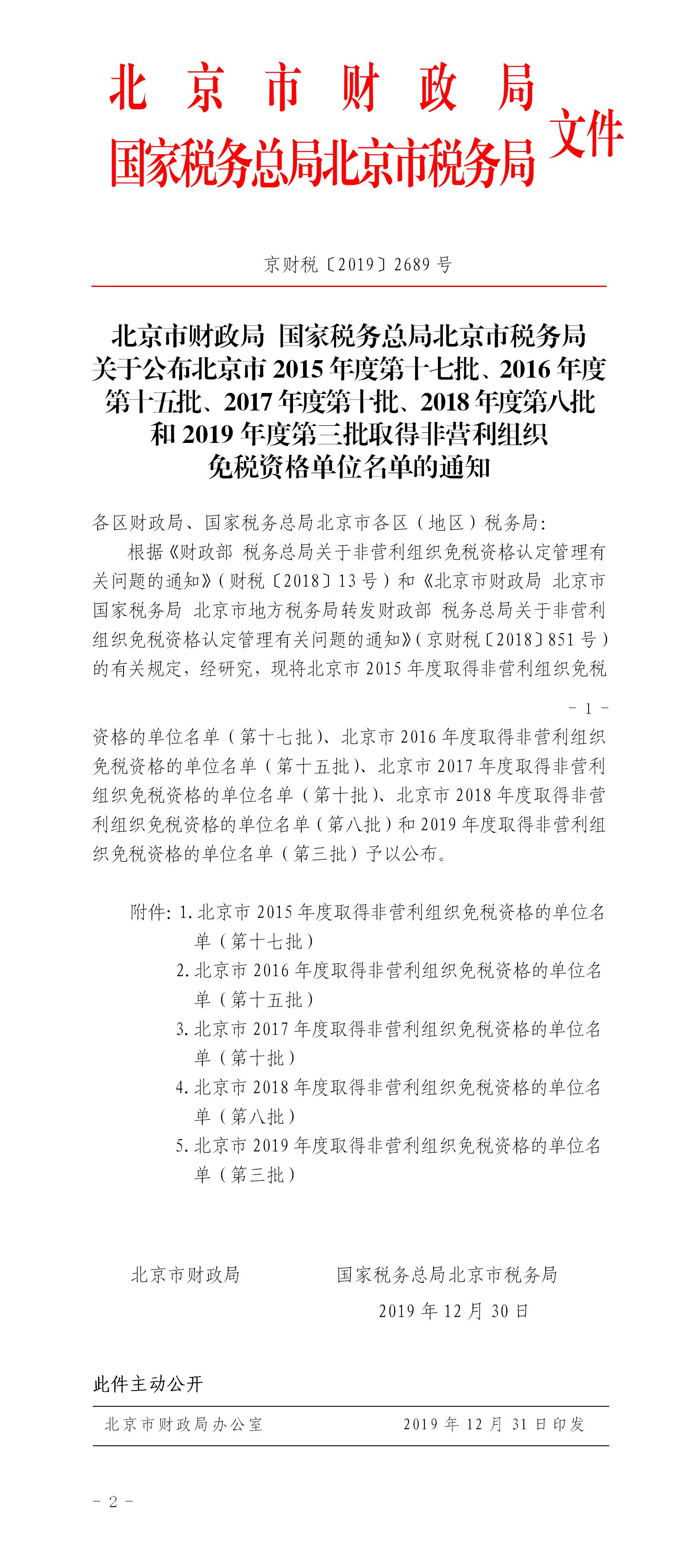 2019年12月31日,北京市财政局、国家税务总局北京市税务局联合发布了《关于公布北京市2015年度第十七批、2016年度第十五批、2017年度第十批、2018年度第八批和2019年度第三批取得非营利组织免税资格单位名单的通知》(京财税〔2019〕2689号),中国科技大学北京校友会获得了2019年度第三批非营利组织免税资格。
