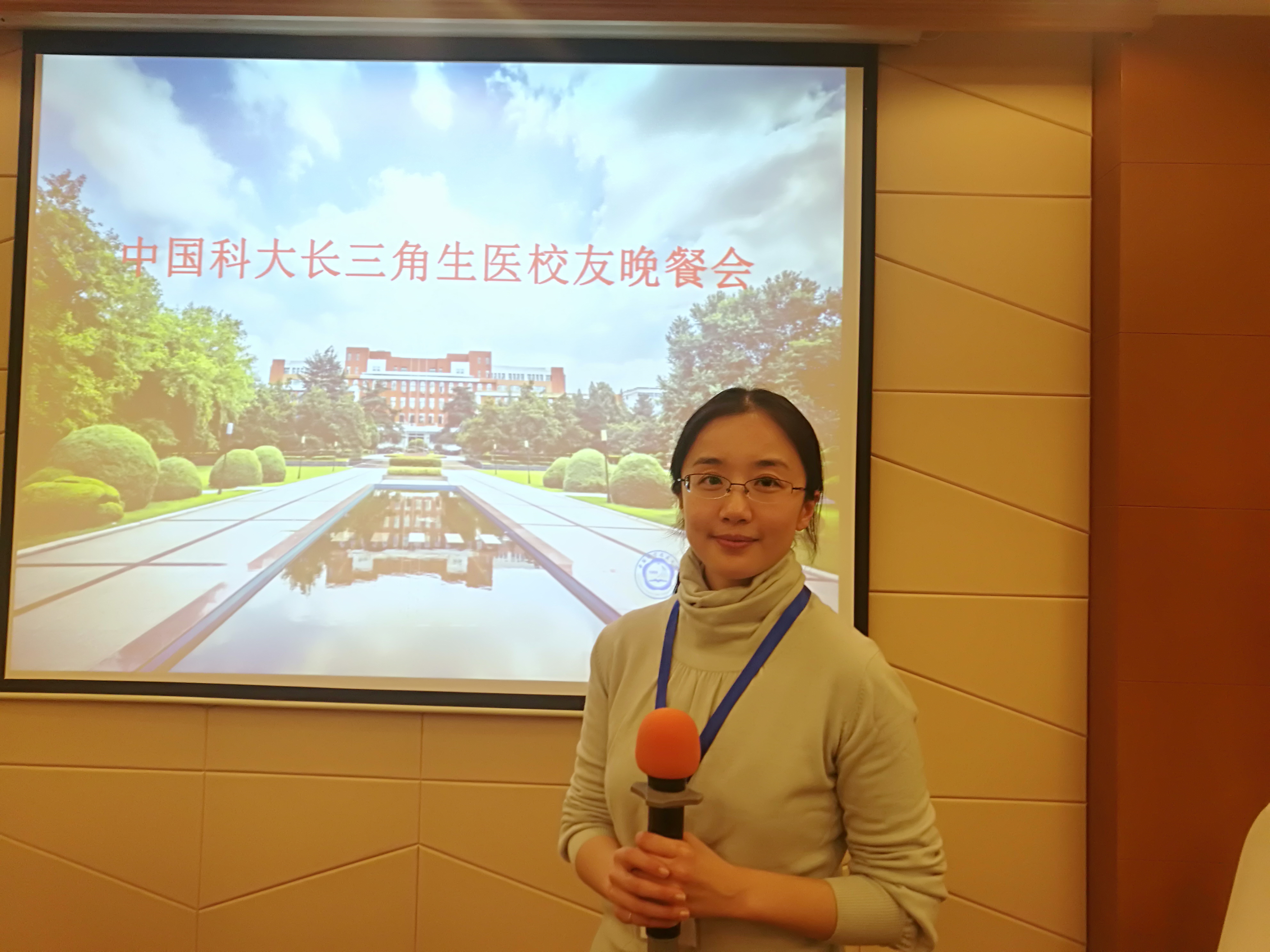 中国科大长三角生命医学晚餐会主持人:苏州校友会借来的女主持人沈贺(0508),沈贺是苏州纳米所副研究员。