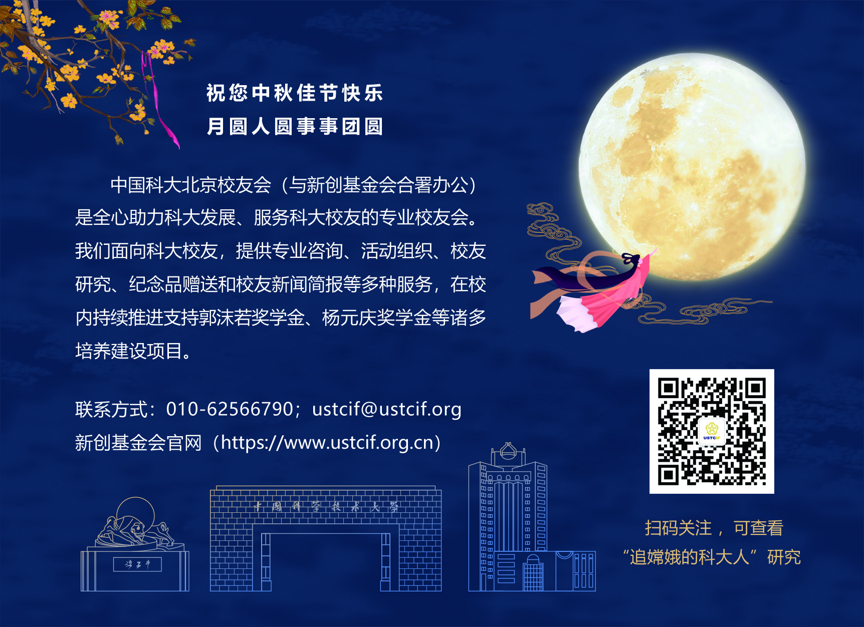 2021中秋佳节来临,中国科学技术大学北京校友会和新创校友基金会将为在京深造校友赠送1000枚中秋月饼(非免费,内含数枚中国科大定制款月饼),欢迎登记领取!
