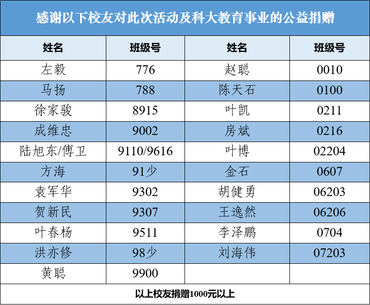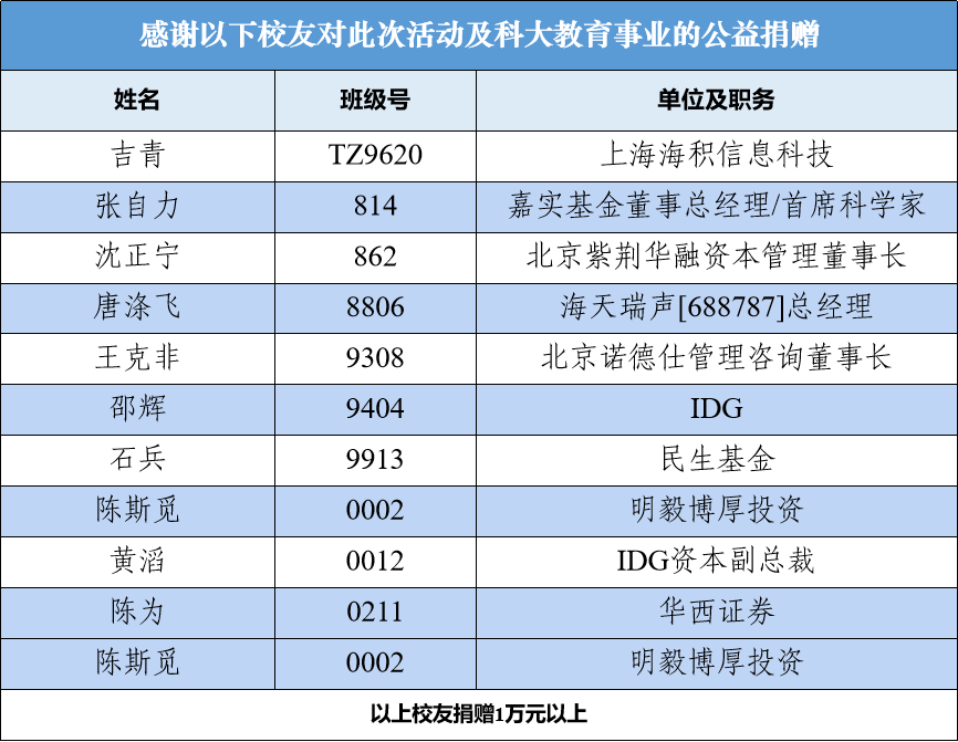 捐赠致谢:本次年会得到以上多位校友以及古井贡酒的捐赠资助,他们的慷慨捐赠保障了年会的顺利进行,也支持了中国科大教育事业发展。北京校友会表示诚挚谢意。